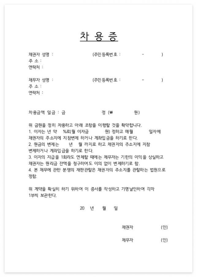 그래서 오늘은 차용증을 작성하는 방법, 적정 이자 및 공증 방법에 대해 알아보겠습니다.