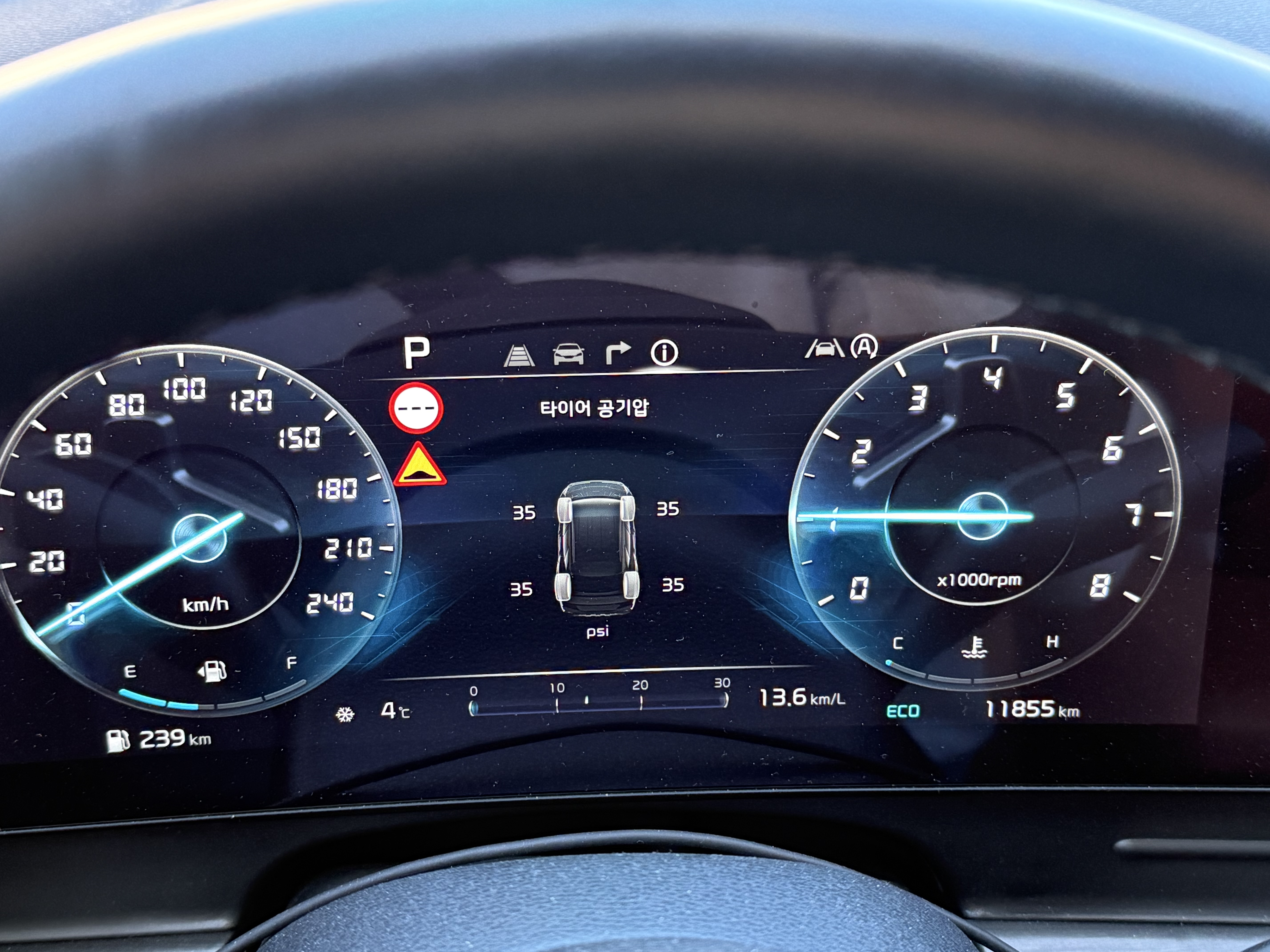 계기판에서 메뉴를 돌리다보면, 위 사진처럼 현재 타이어 공기압 수치를 확인할 수 있습니다.