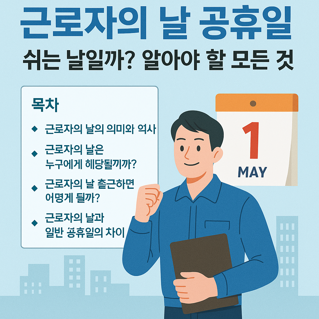 많은 분들이 헷갈리는 부분이 바로 '근로자의 날'과 '공휴일'의 차이인데요. 공휴일은 '관공서의 공휴일에 관한 규정'에 따라 모든 국민이 적용받는 공식 쉬는 날입니다. 하지만 근로자의 날은 근로기준법에 근거한 '근로자'만을 위한 특별한 휴일이에요. 그래서 근로자의 날은 법정공휴일은 아니지만, 법정휴일로서 근로자에게 부여되는 거랍니다. 이런 차이를 알면 왜 어떤 곳은 쉬고, 어떤 곳은 정상 운영하는지 자연스럽게 이해가 되실 거예요.