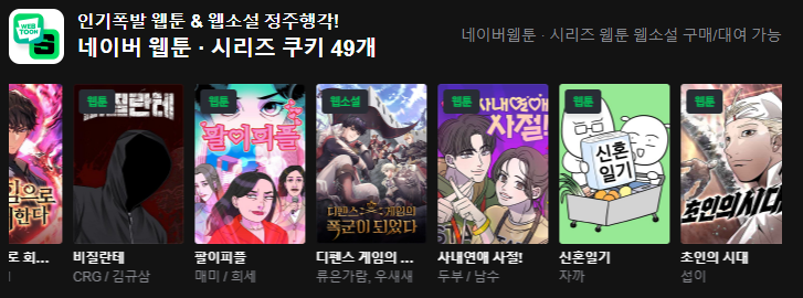 3) 네이버 웹툰, 시리즈 쿠키 49개