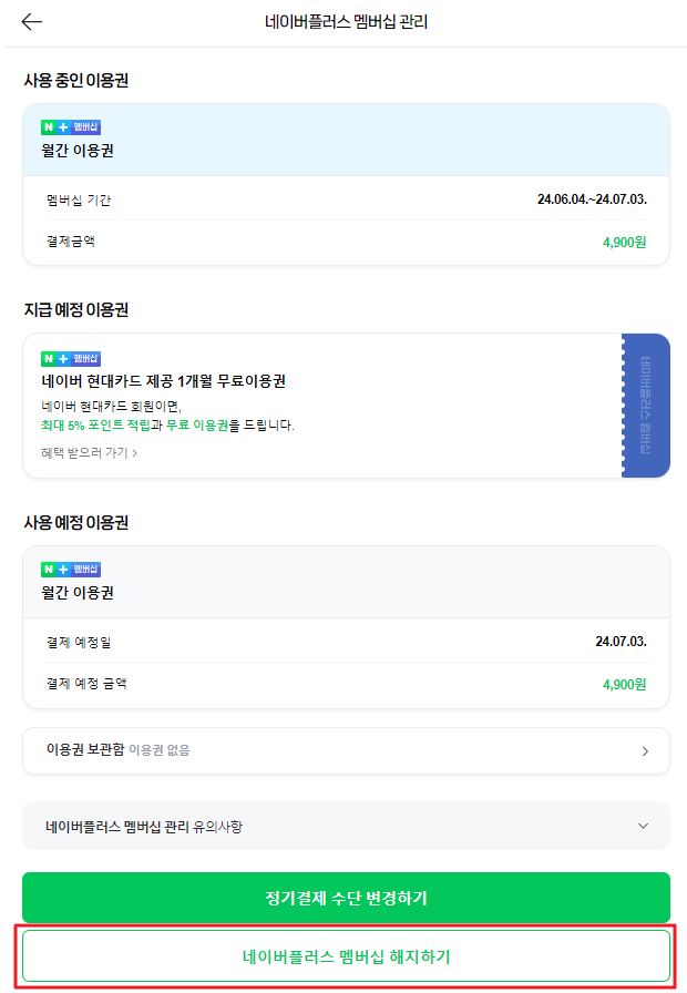 2. 네이버 멤버십 플러스 해지 방법