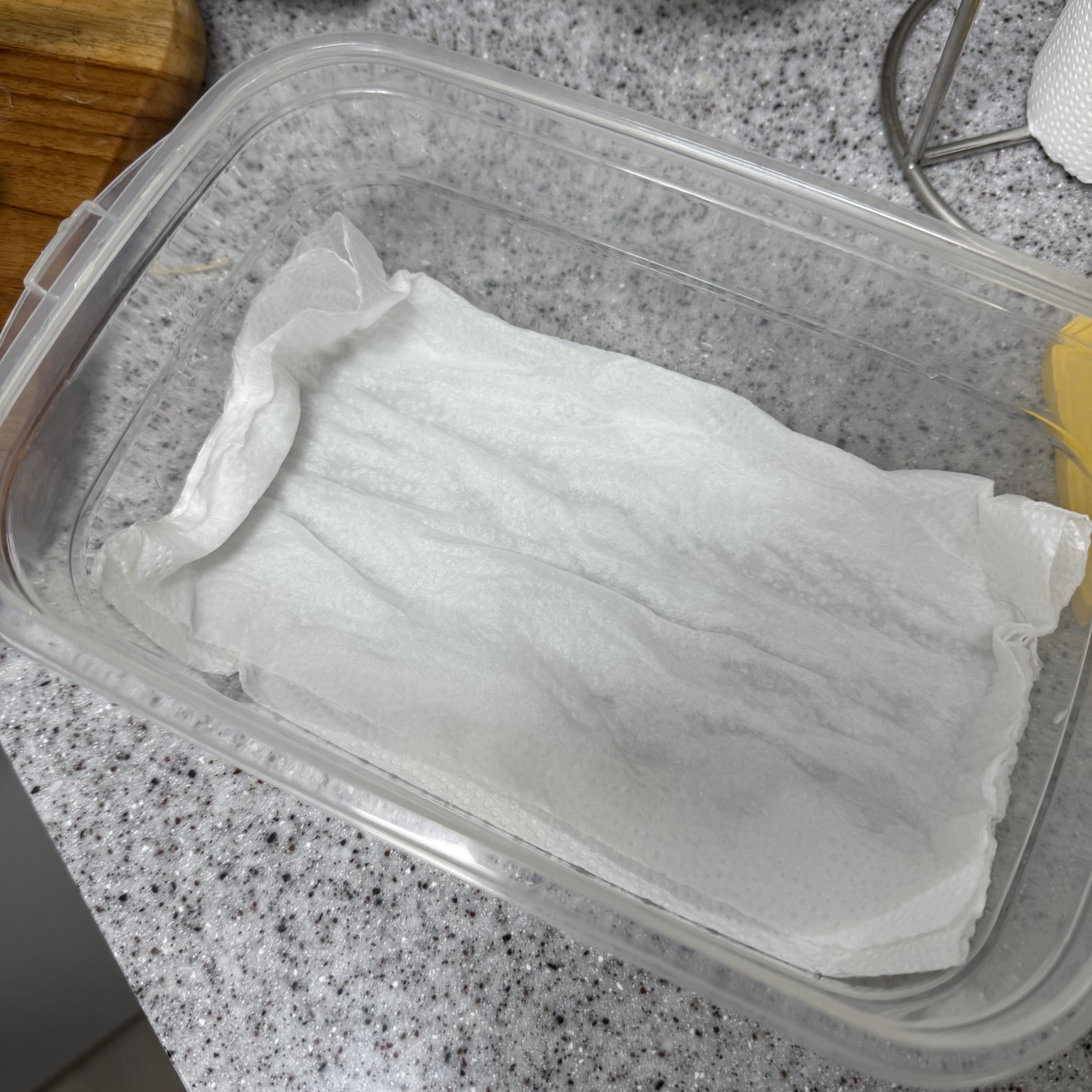 • 키친타월 깔고 소주를 조금 부어서 적셔주기