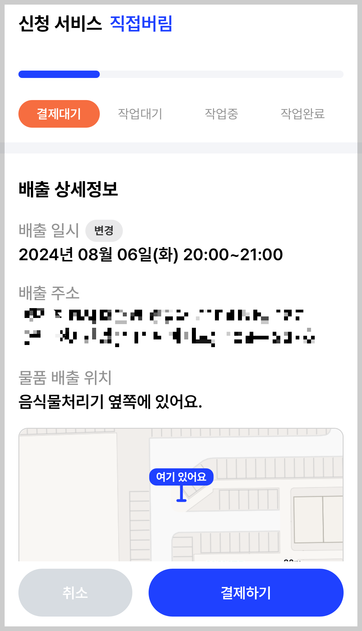 마지막으로 앱에서 버리는 품목들에 대해 결제를 진행해주면 끝입니다.