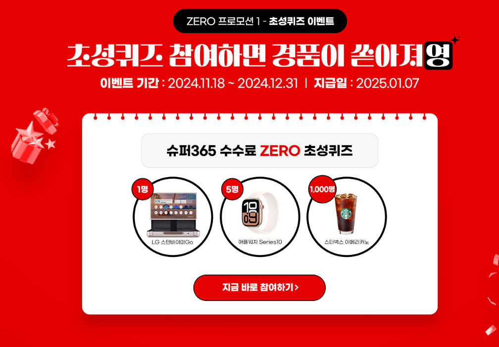 스탠바이미, 애플워치, 스타벅스 기프티콘까지 참여가 쉬우니 응모 한 번 해보시는게 어떨까요?