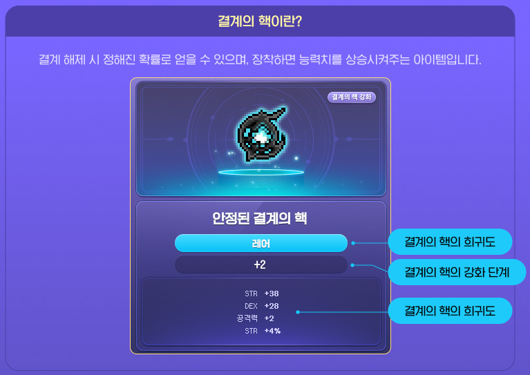 결계의 핵은 무작위로 5단계(노멀~레전드리)로 나오고, 높은 티어일수록 좋은 등급이 나올 확률이 커요. 따라서 핵심 전략은 이렇습니다: