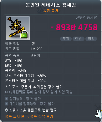 | 스탯 보너스 | 아케인포스 150 등 다양한 능력치 강화 |