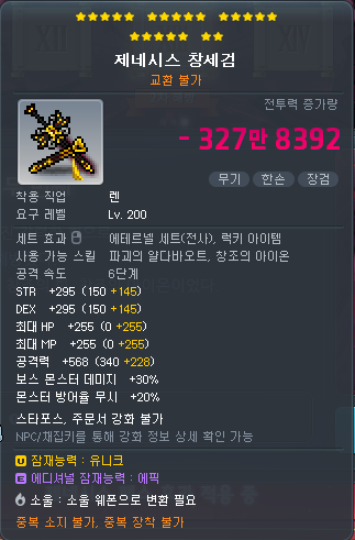 거의 필수라고 봐야 해요. 드랍률, 메소획득, 주스탯 21% 등 옵션이 훌륭해서 해방 세팅에서 빠지면 손해예요.