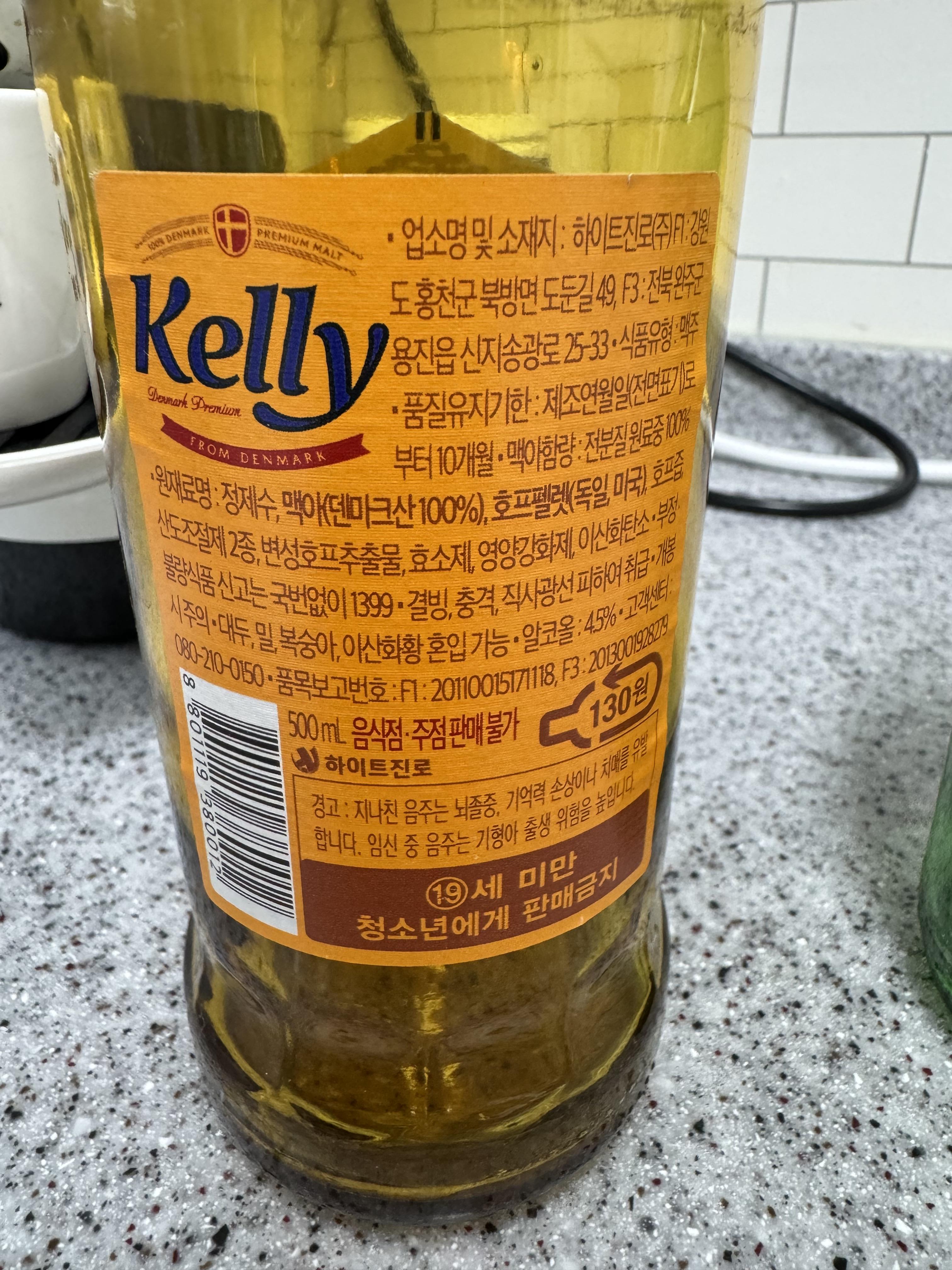 맥주는 500ml가 대부분이기에 130원 이라고 할 수 있습니다.