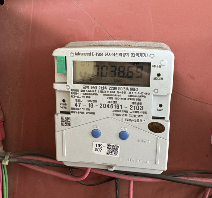 저희 집은 복도식이라 대문 쪽에 있어서, 전자식전력량계를 확인할 수 있었습니다.