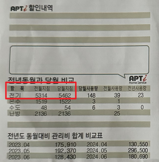 그리고 이전 달의 전력량계 기준이 필요한데, 관리비 청구서를 보면 확인할 수 있습니다.