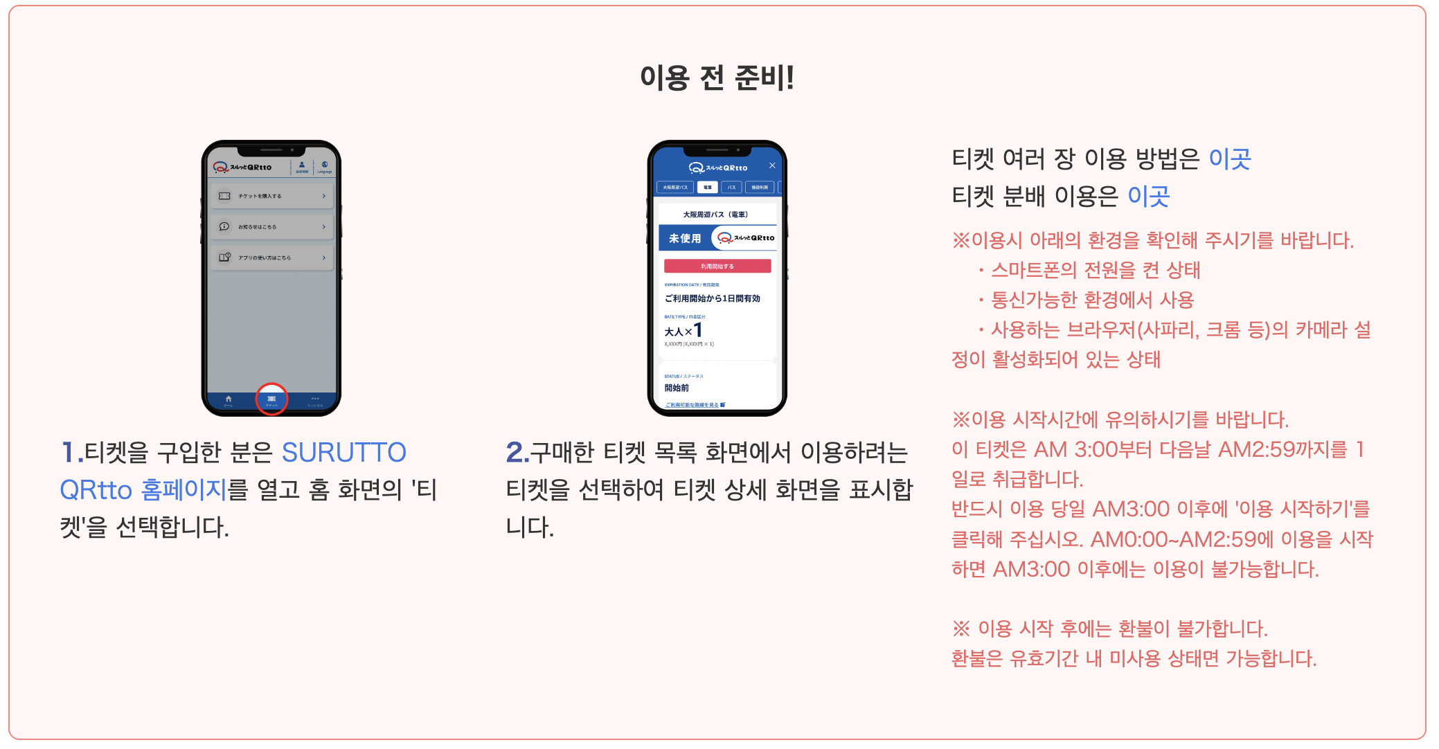 surutto qrtto 라는 홈페이지에 접속해서 티켓을 보여주어야 하는데,