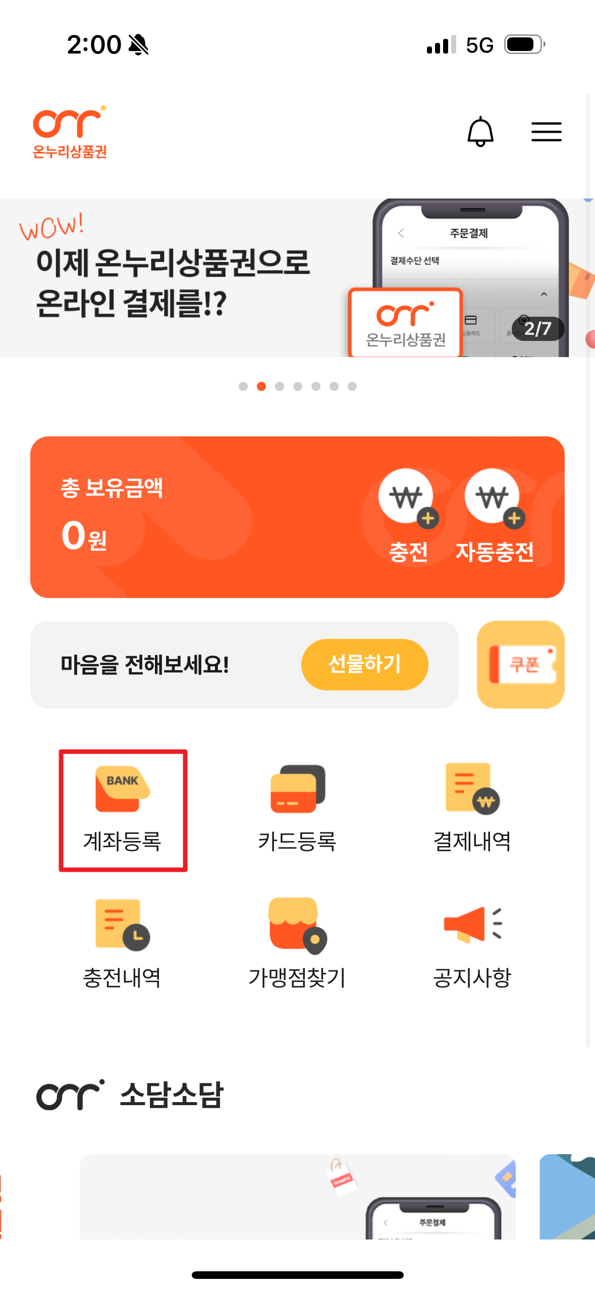 충전식 카드형 계좌 등록 및 카드 등록 방법