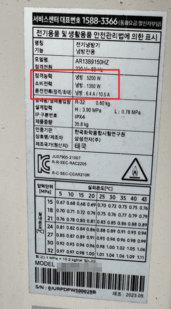 인버터형의 경우는 전력을 조절하기 대문에 아래와 같이 정격/최대가 나와있습니다.