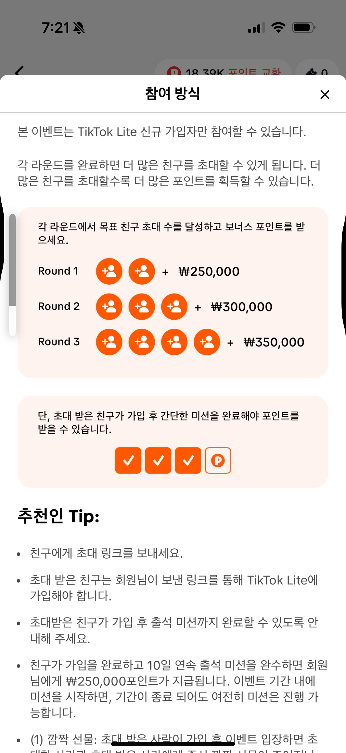 우선, 틱톡 라이트의 초대 이벤트를 하시면 3만원 ~ 최대 90만원까지도 가능합니다.
