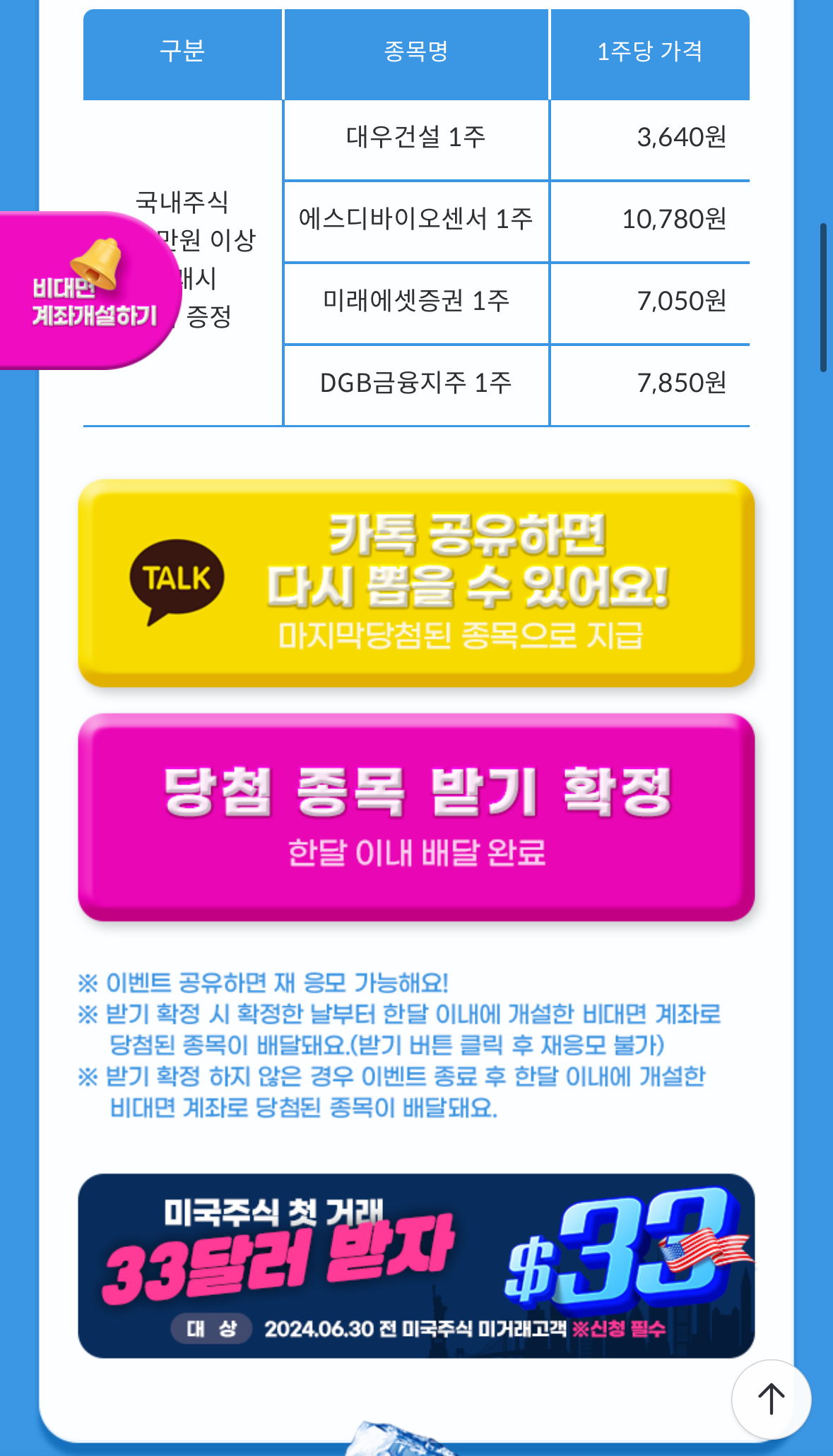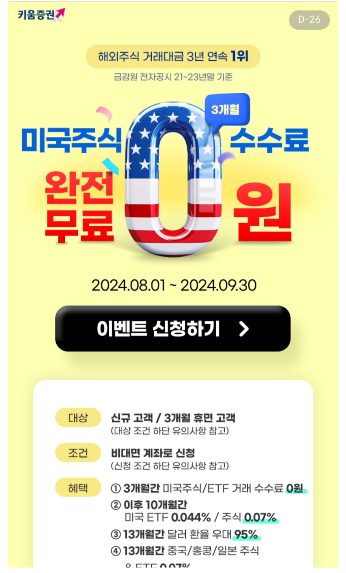 2024.07.01 일 기준으로 미국주식 거래가 없는 고객만 참여가 가능합니다.