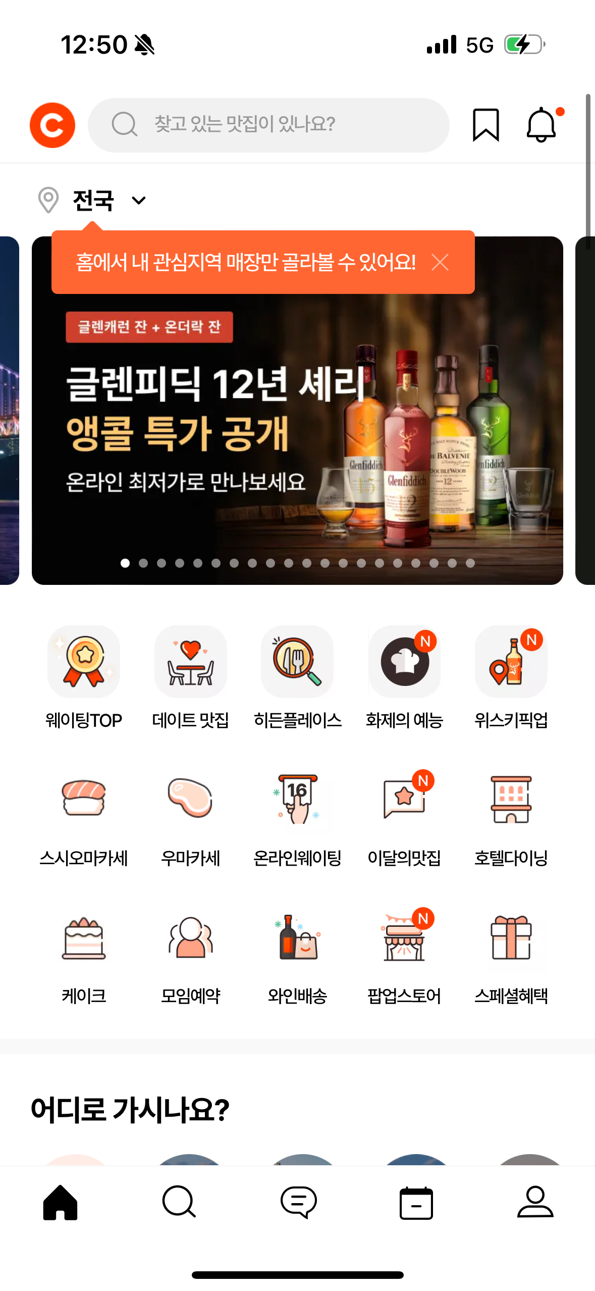 캐치테이블 앱에 접속을 해서, 화제의 예능을 클릭해 줍시다.