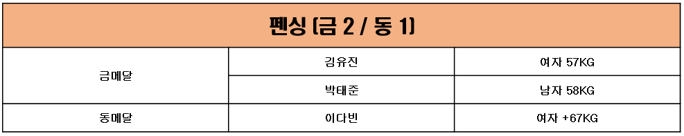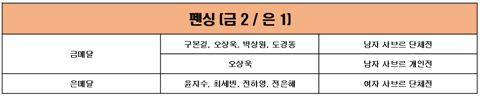 펜싱에서는 금메달 2개와 은메달 1개를 획득했습니다.