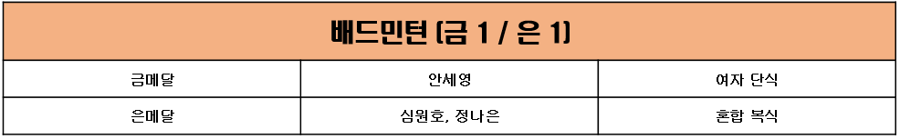 배드민턴은 금메달 1개, 은메달 1개가 나왔습니다.