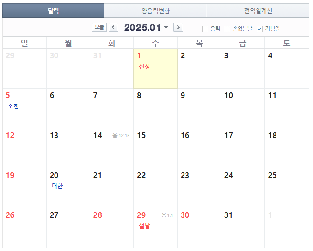 | 설날 | 1월 28일 ~ 30일 | 화~목요일 |