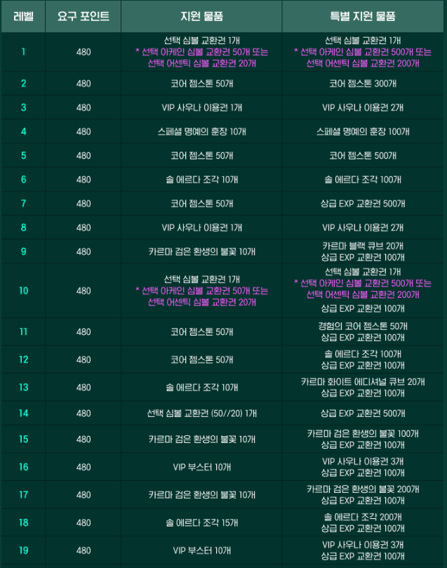 - 레벨 미션 : 260 ~285레벨 까지 단계별 포인트 및 코인 지급