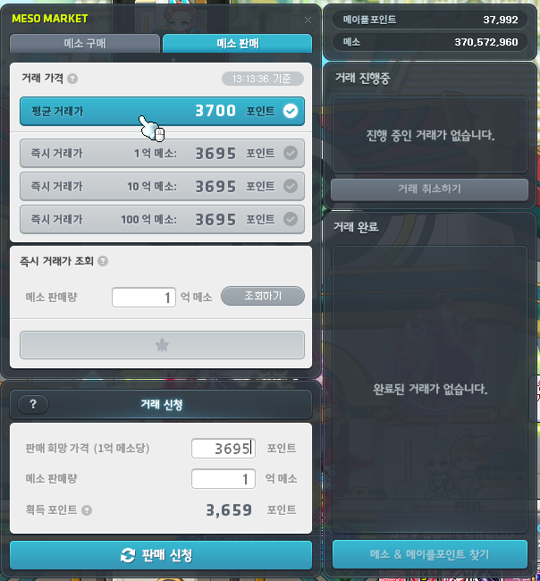 최근 메소마켓에만 들어가도 뉴비들의 유입으로 인해 메소 가격이 엄청나게 올라갔습니다.
