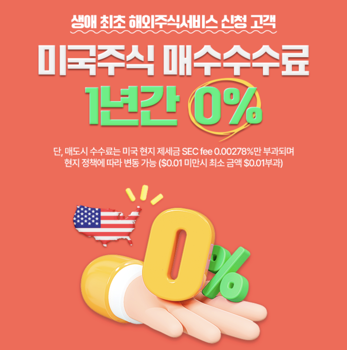 미국주식 온라인 매매수수료가 1년 간 0%로 이용가능합니다.