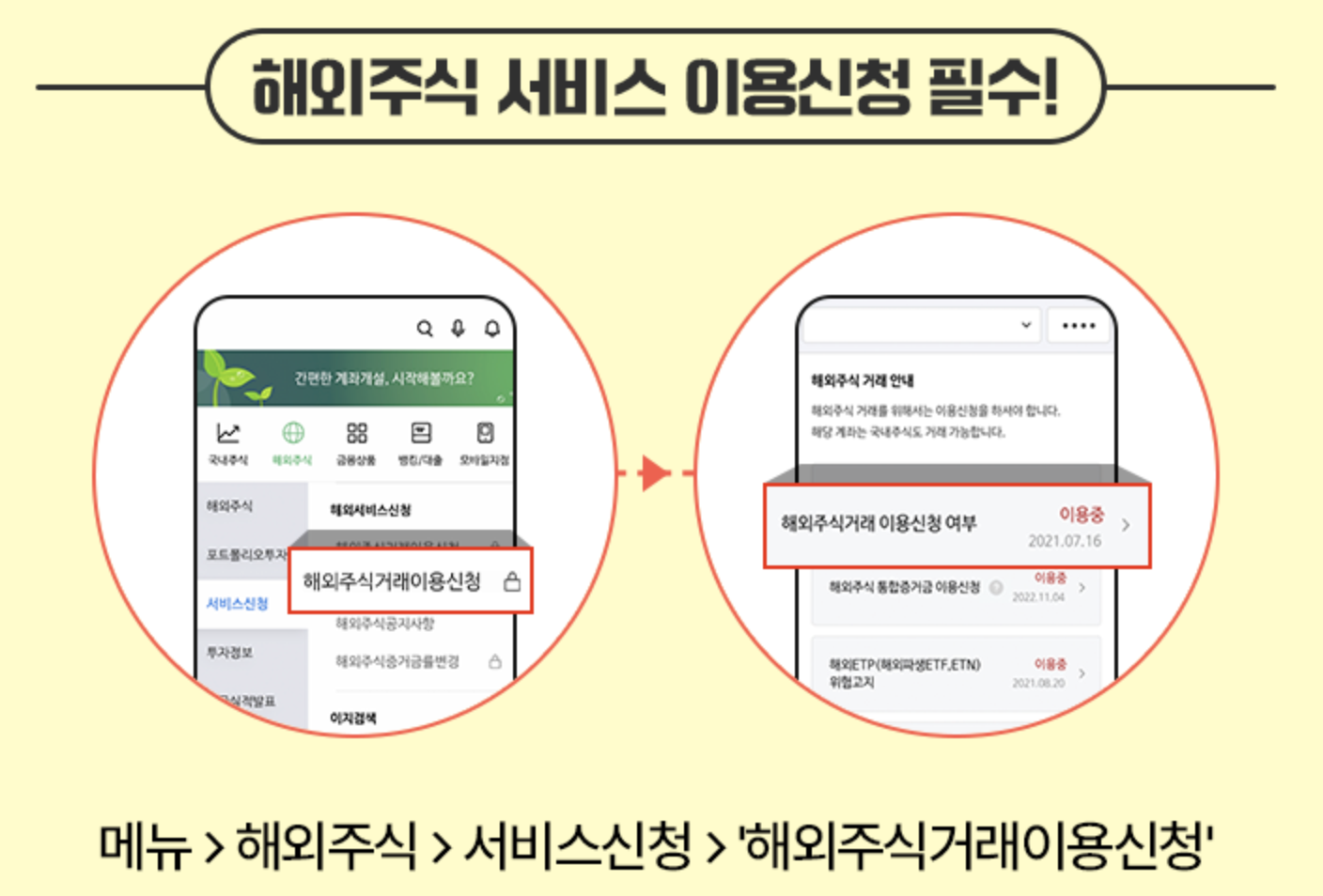 이번 매매수수료 이벤트 참여를 하기 위해서는 아래와 같이 해외주식거래이용신청은 반드시 해주셔야합니다.